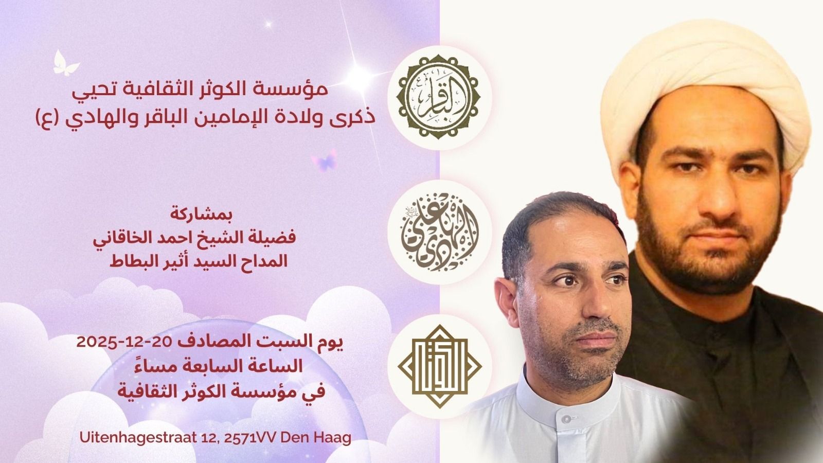 السبت المقبل ... تحيي مؤسسة الكوثر الثقافية ذكرى ولادة الامامين الباقر والهادي عليهما السلام